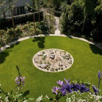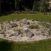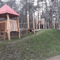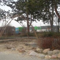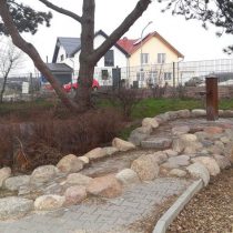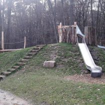 MAIGLÖCKCHENPFAD RÖDERMARK, Bauherr Stadt Rödermark, Bauzeit 2017, Fläche 700 m². Der Kindergarten wurde mit einem neuen Spielplatz ausgestattet: Bau des Hügels mit Raseneinsaat und Pflanzarbeiten, Klettergerüste, Kletterwände, Spielhäuschen und ein Wasserspiel , Findlinge und Fallschutz